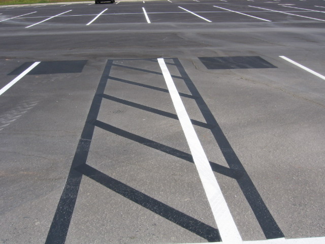 As asphalt ages it begins to grey and oxidize. The loss of oils in the asphalt causes your parking lot to deteriorate by losing fines that hold the aggregate in place. The aggregate begins to slowly pop out, causing small holes in your parking lot. This is referred to as raveling. We provide a high quality oil based asphalt seal coating product that penetrates and reintroduces the oils and binders that are the glue to your asphalt parking lot or driveway. Most seal coats lay on top of your asphalt and do not reintroduce oils and binders that penetrate the top layer of pavement. This is why we use high end oil based asphalt seal coating products, as opposed to the water based products.
